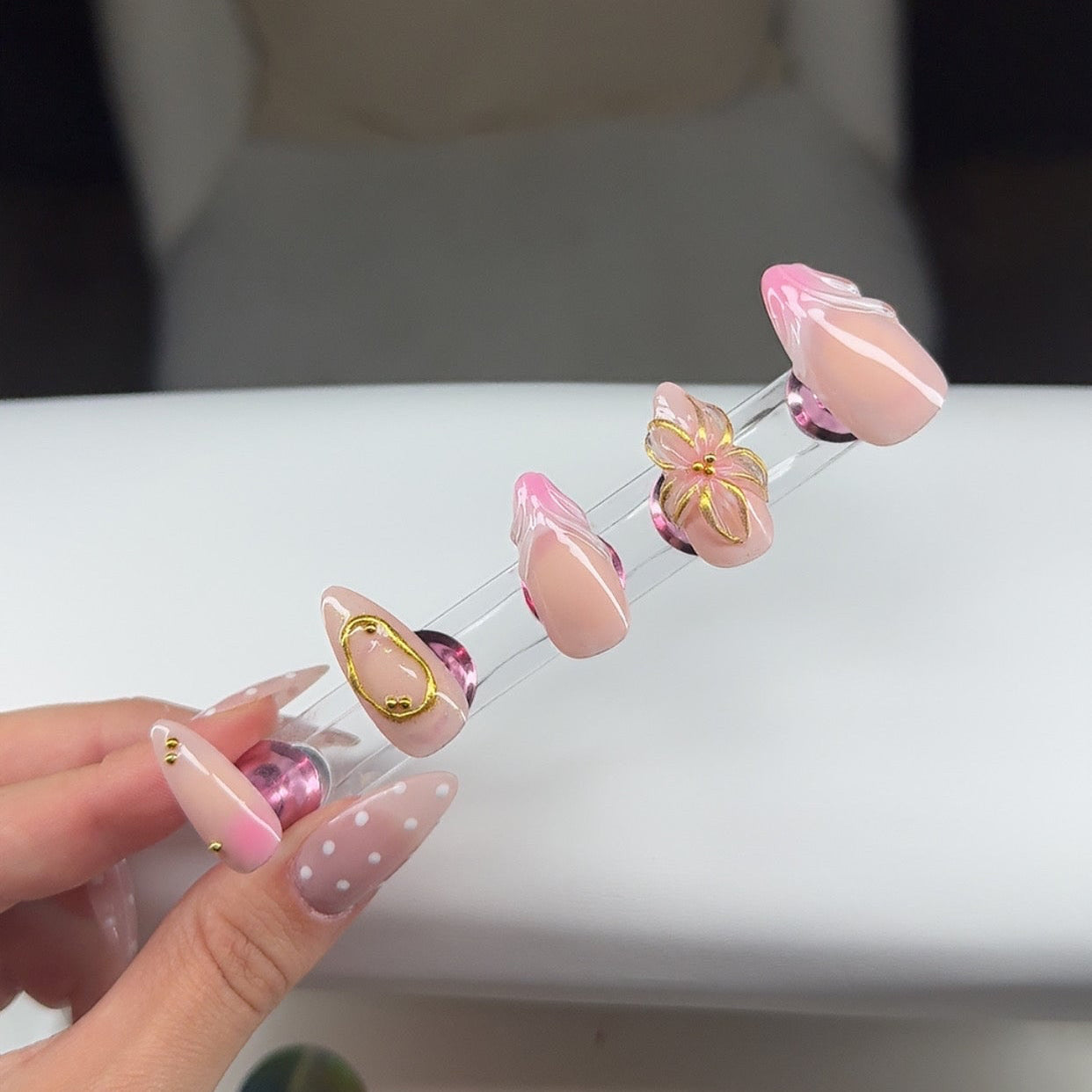 Press-On Nails Floral 3D – Faits main, faciles à poser & réutilisables