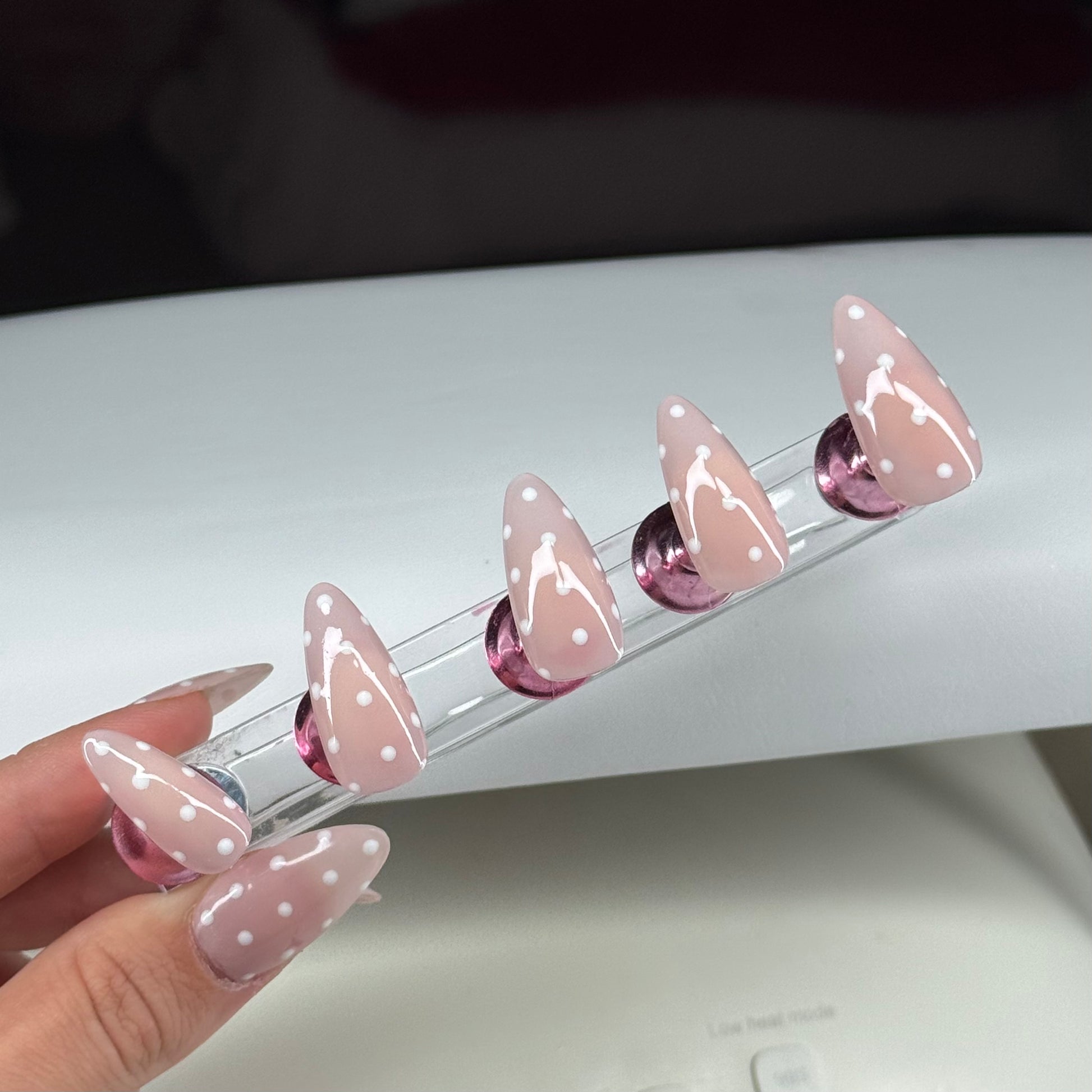 Press-On Nails Pois Blancs – Faits main, faciles à poser & réutilisables