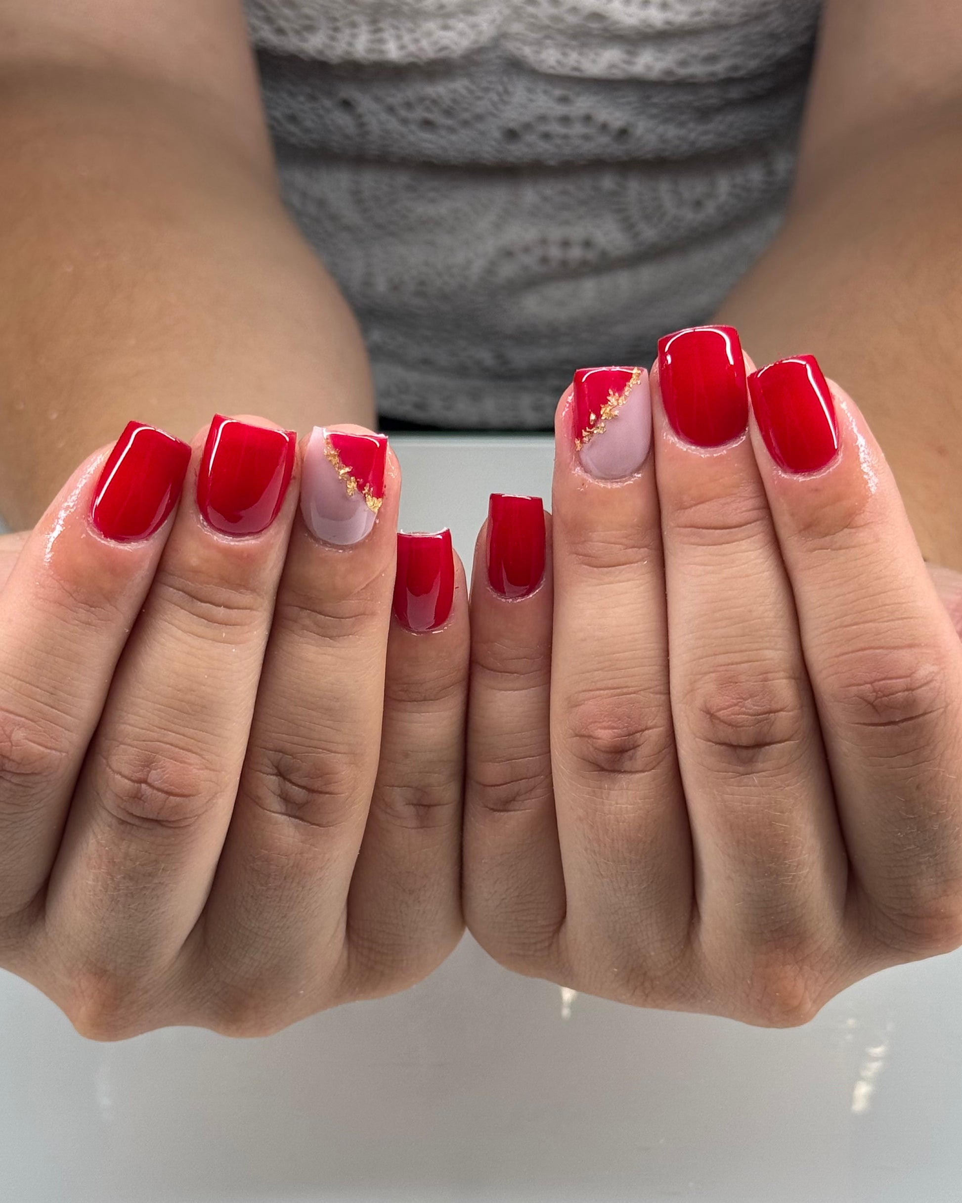 Press-On Nails Red & Gold – Faits main, faciles à poser & réutilisables