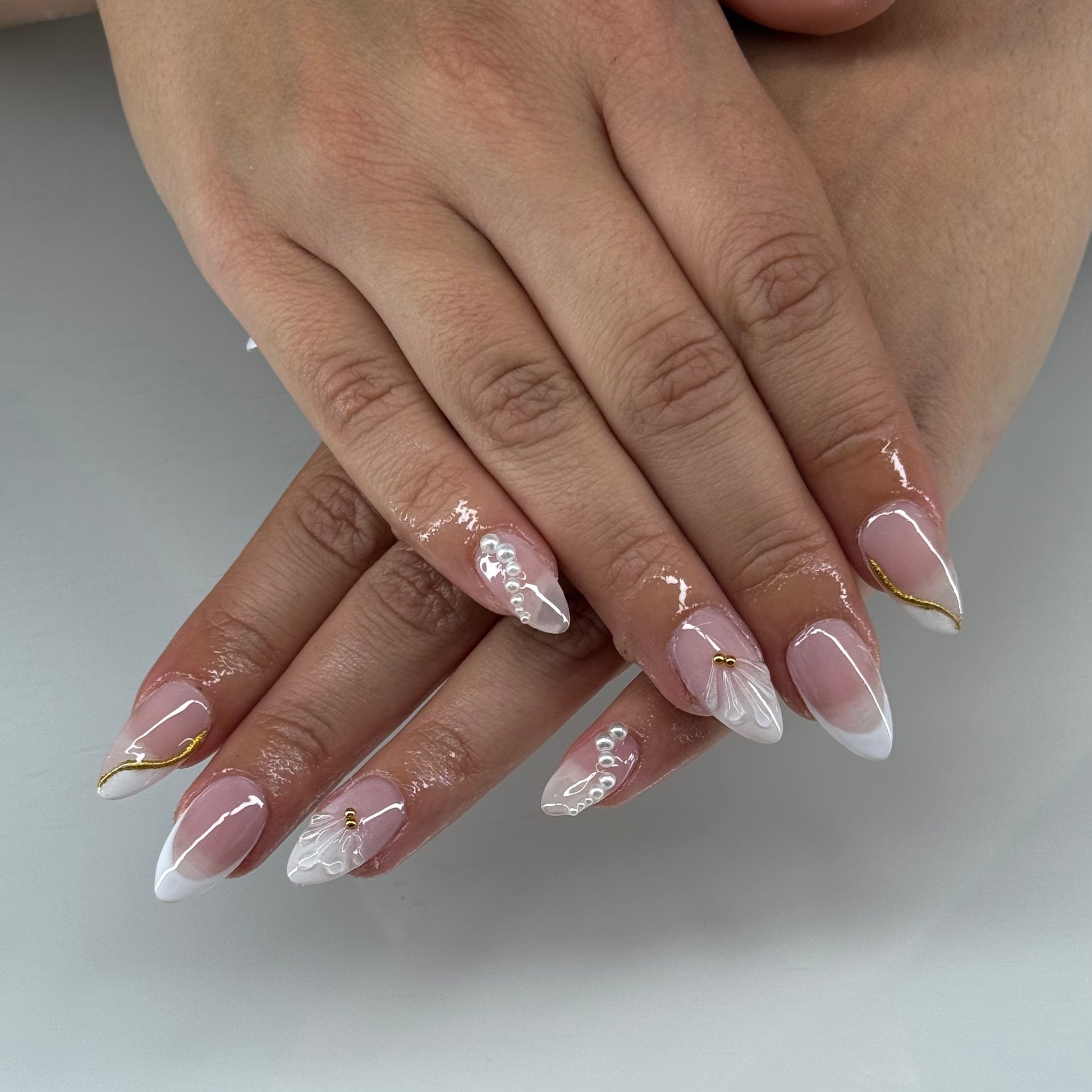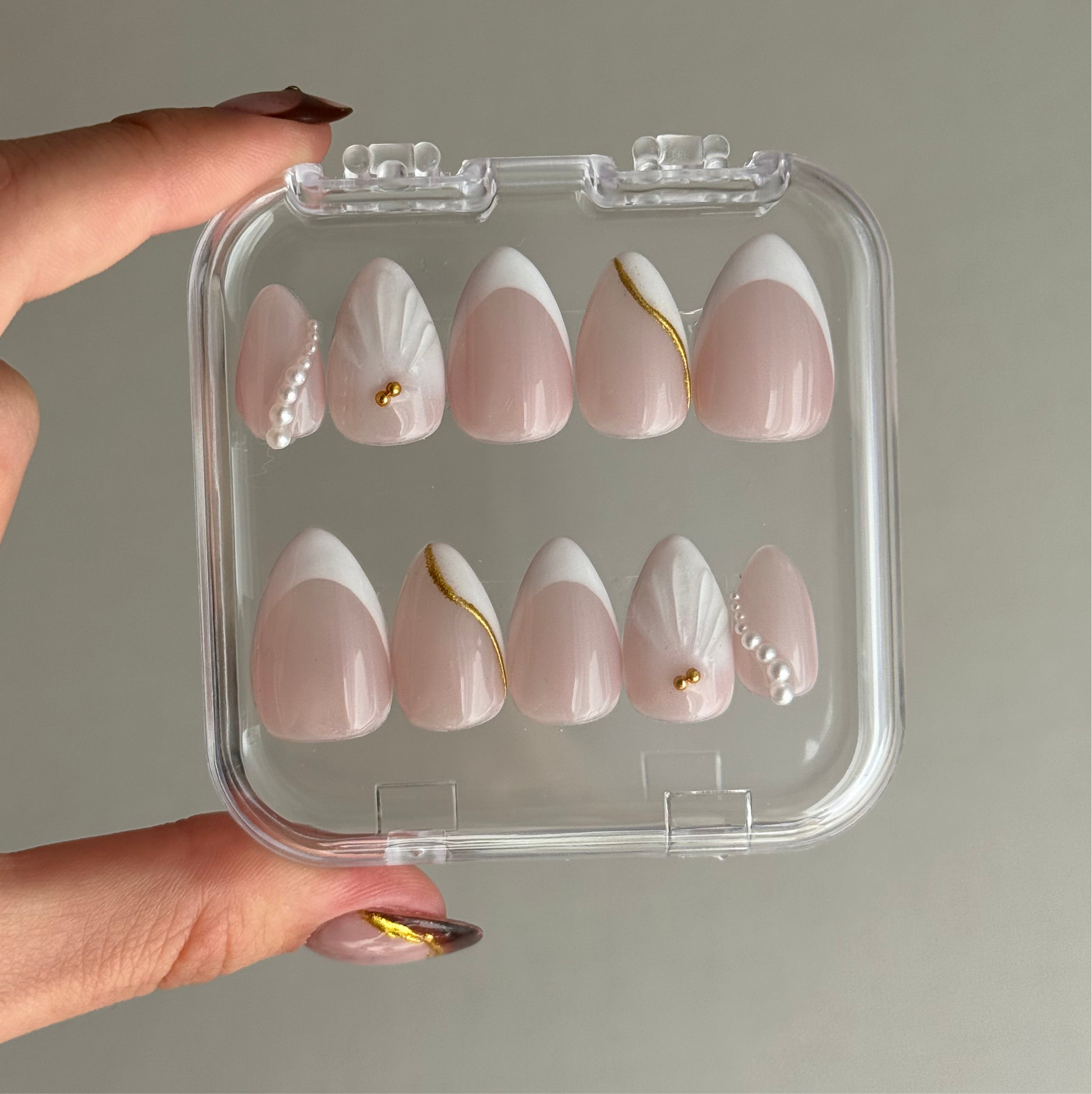 Press-On Nails White & Gold – Faits main, faciles à poser & réutilisables
